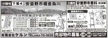2020年04月22日 安曇野市堀金烏川 新規住宅地「下堀4」 いよいよ完成間近になりました。 信濃毎日新聞の折り込み広告「おうちさがし」に掲載があります。 緊急事態宣言が発令されましたので、強くはお願いできませんが 折を見て現地をご覧頂きたいです。 もう新型コロナウイルスの対策に疲れましたが 更に気を引き締めて、みなさんでがんばりましょう。 前の記事へ 次の記事へ