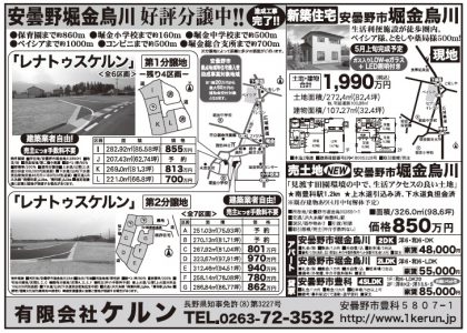 本日 信濃毎日新聞の「おうちさがし」に広告掲載しました